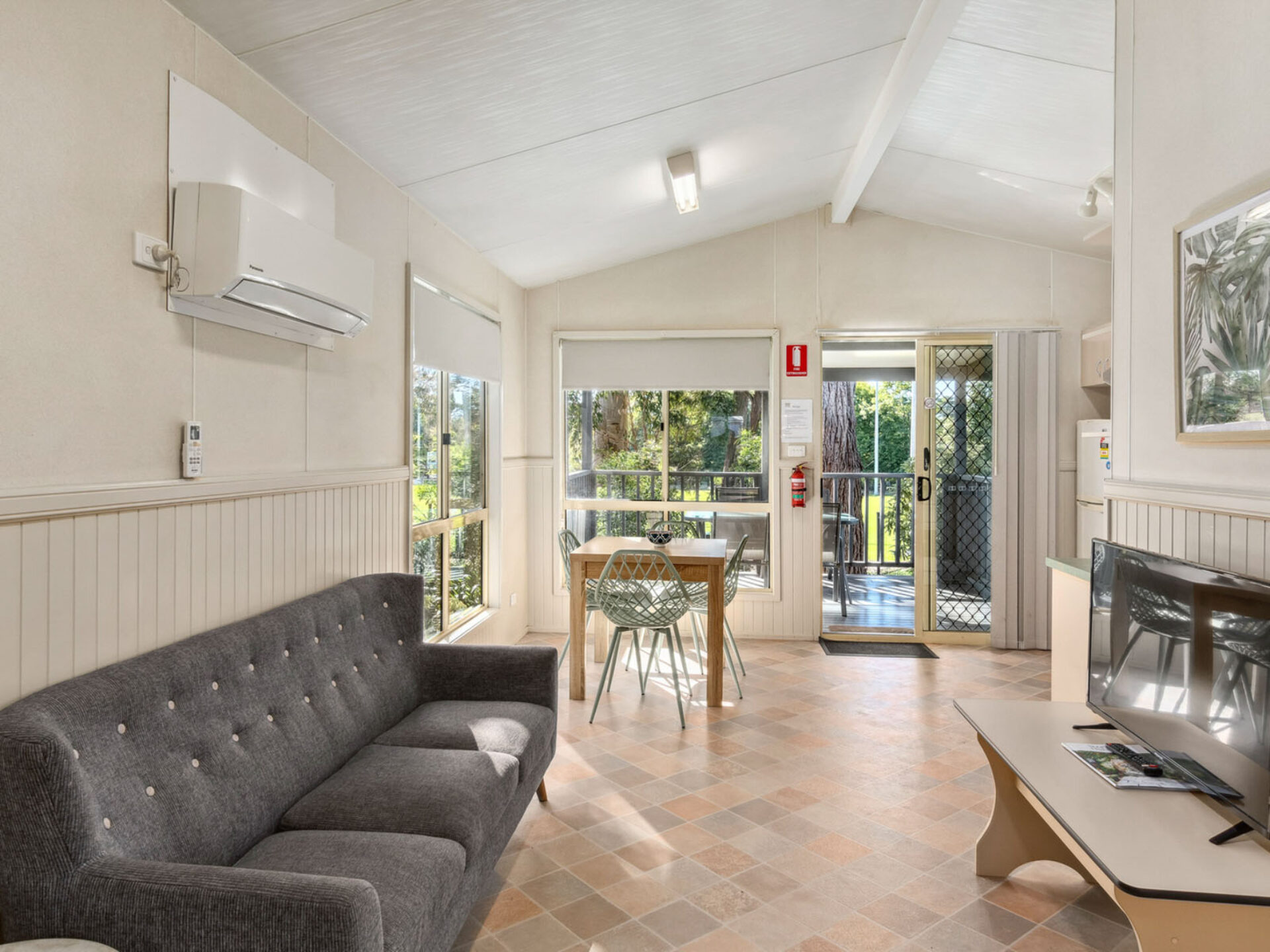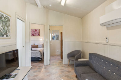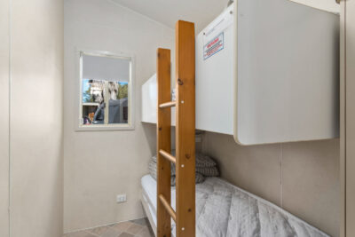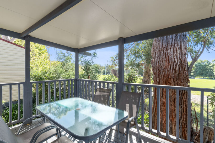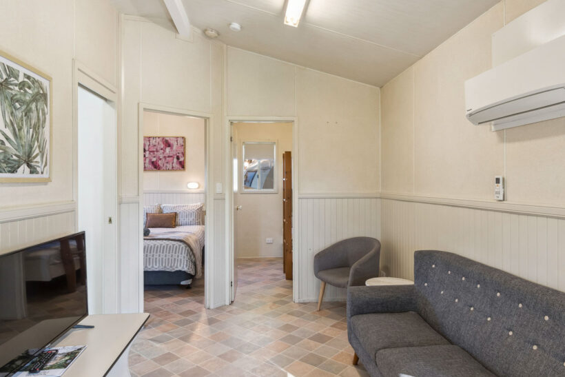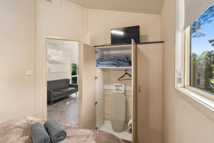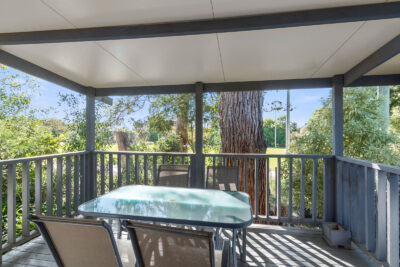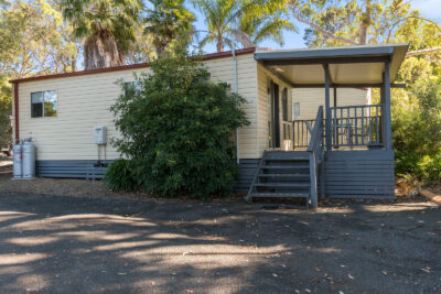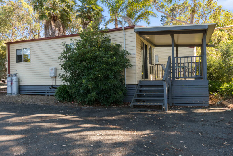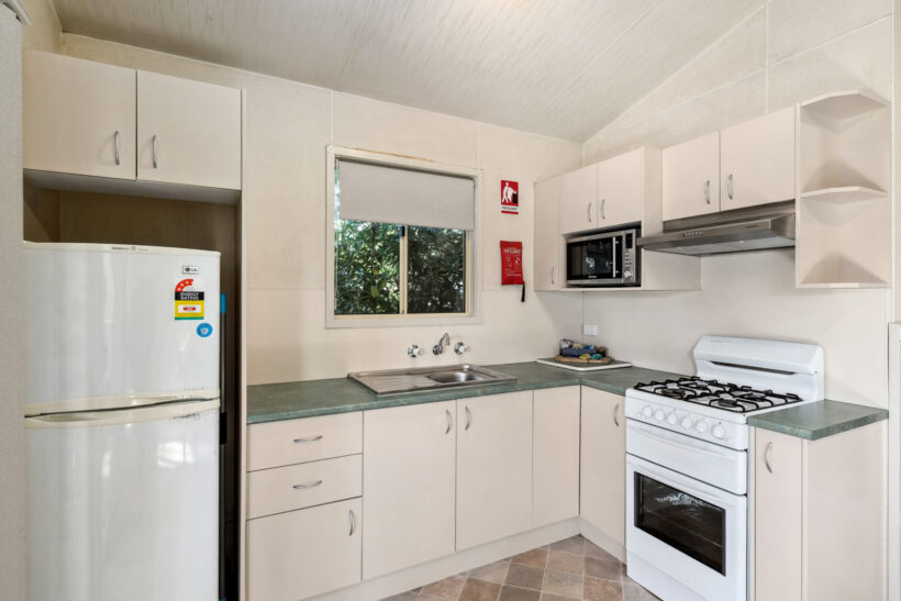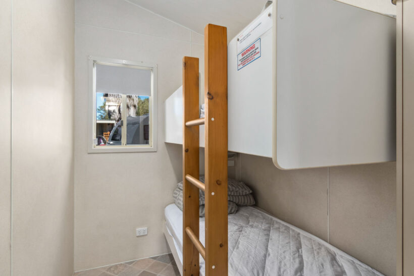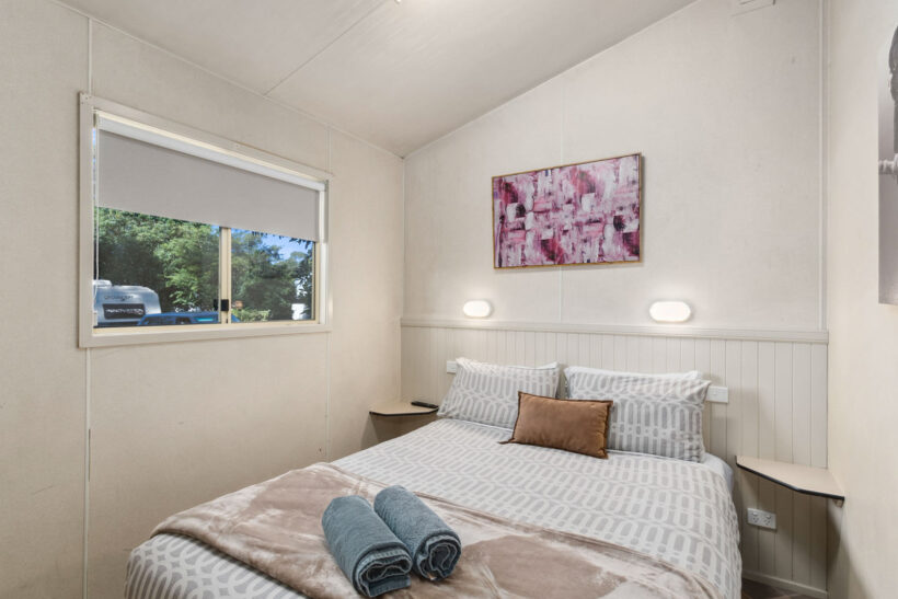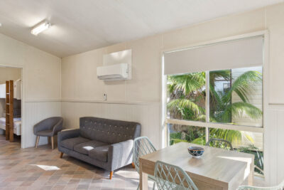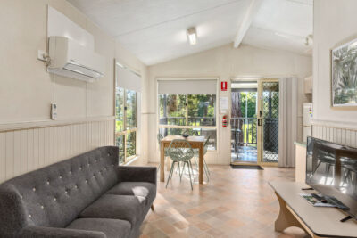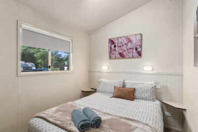 This pet-friendly two-bedroom cabin sleeps up to four guests with a double bed and a set of single bunk beds. It features a spacious open-plan living, dining, and kitchen area with a full-size fridge, gas cooktop, microwave, and electric oven. Relax on the private balcony and enjoy the peaceful surrounds, with reverse cycle air conditioning for added comfort.
