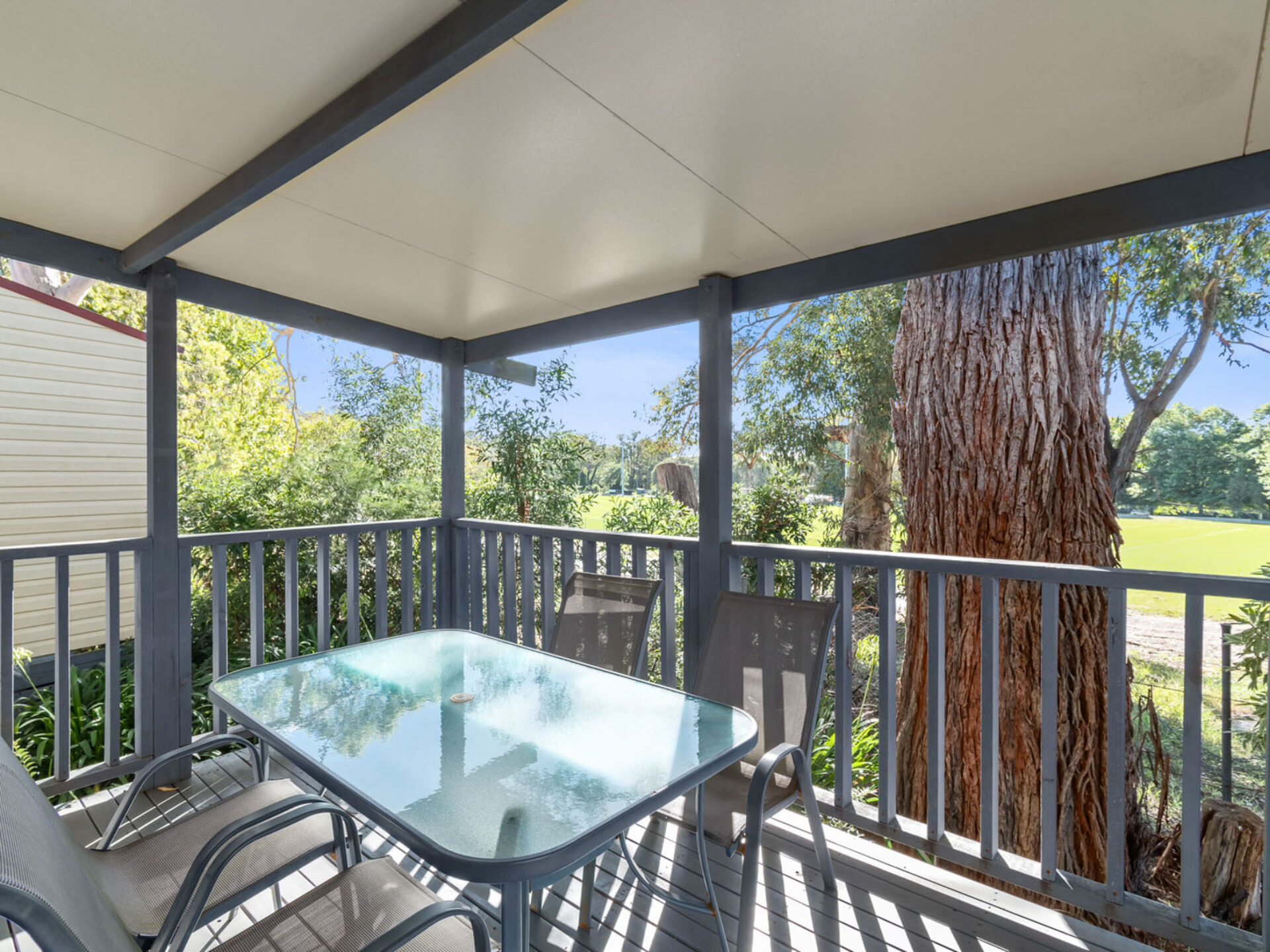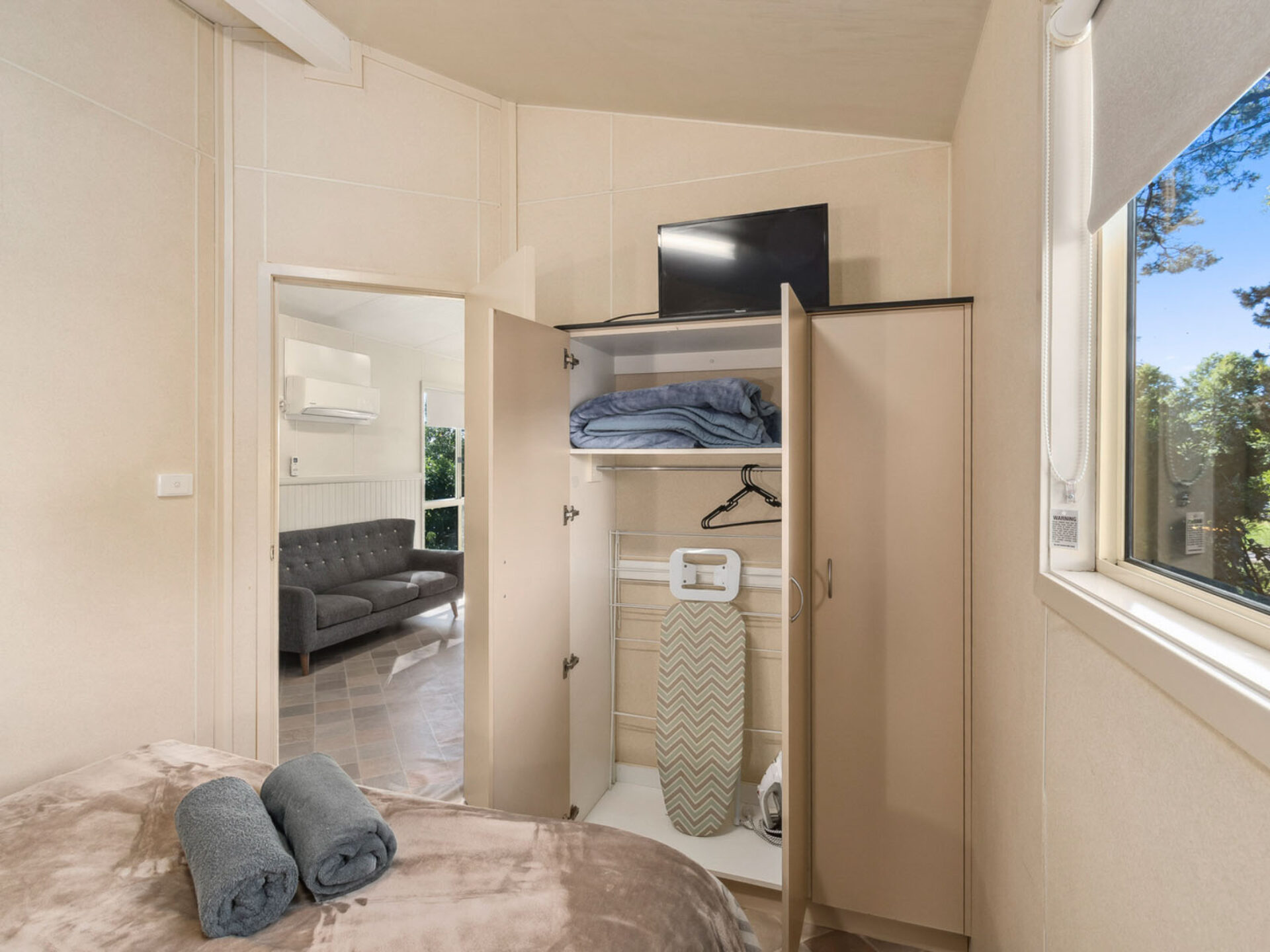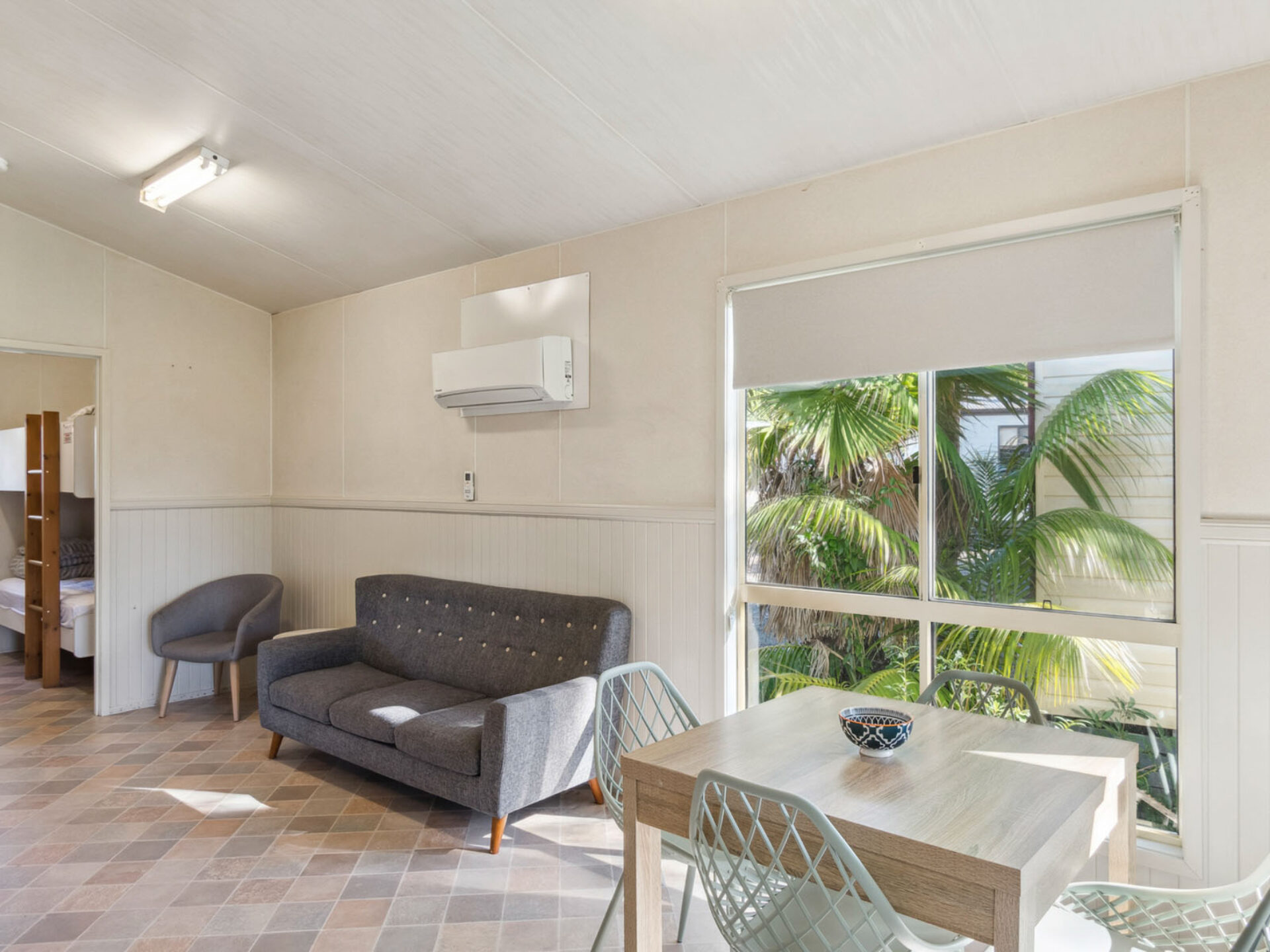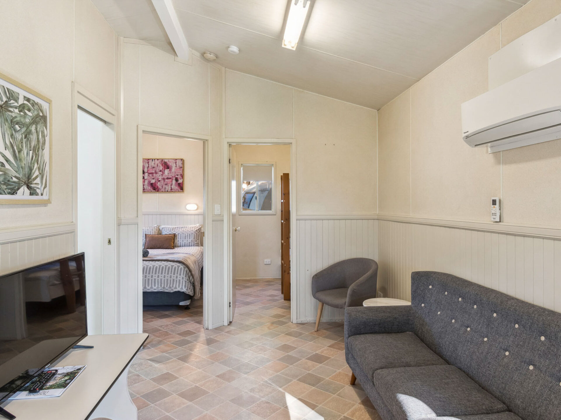 This pet-friendly two-bedroom cabin sleeps up to four guests with a double bed and a set of single bunk beds. It features a spacious open-plan living, dining, and kitchen area with a full-size fridge, gas cooktop, microwave, and electric oven. Relax on the private balcony and enjoy the peaceful surrounds, with reverse cycle air conditioning for added comfort.